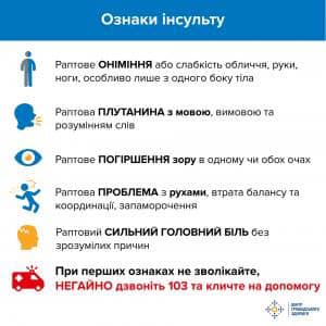Медики нагадують: при появі симптомів інсульту необхідно терміново викликати бригаду екстренної медичної допомоги для негайного транспортування в лікарню.