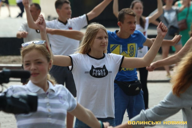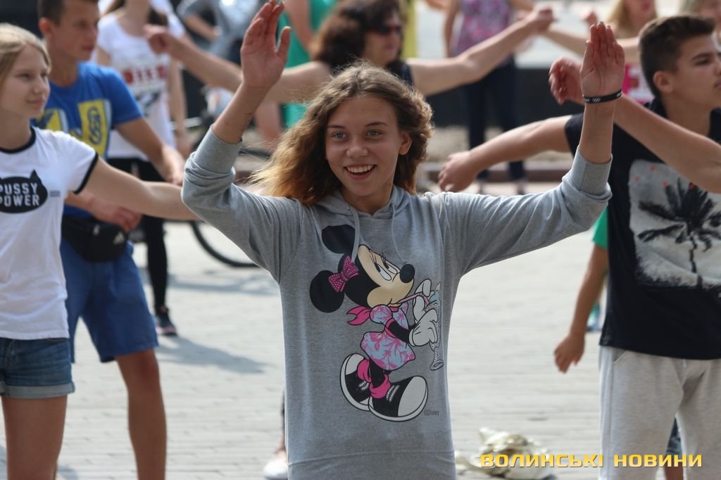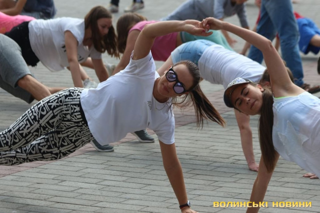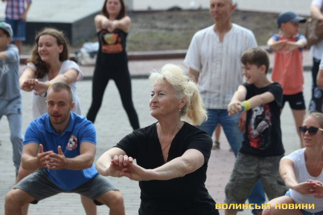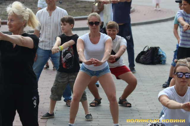 Провів святкову зарядку заслужений тренер України Олег Хом’як, який ще з квітня гуртує людей на такі дійства. З його слів, це ранкові вправи – це здоров’я та заряд сил на цілий день.