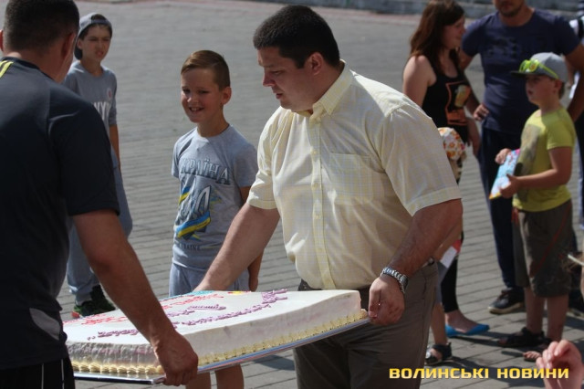 Відтак, символічну річницю з початку хорошої спортивної ініціативи вирішили відсвяткувати святковим сирним тортом. Також лучанам дарували річний абонемент в мережу фітнес-клубів «Інтер Атлетика».Заступник міського голови Костянтин Петрочук подякував небайдужим за сприяння в розвитку такої ініціативи та запевнив, що Луцька міська рада і надалі долучатиметься до ініціатив, спрямованих на покращення стану здоров’я лучан.