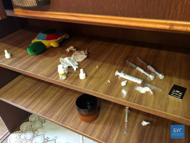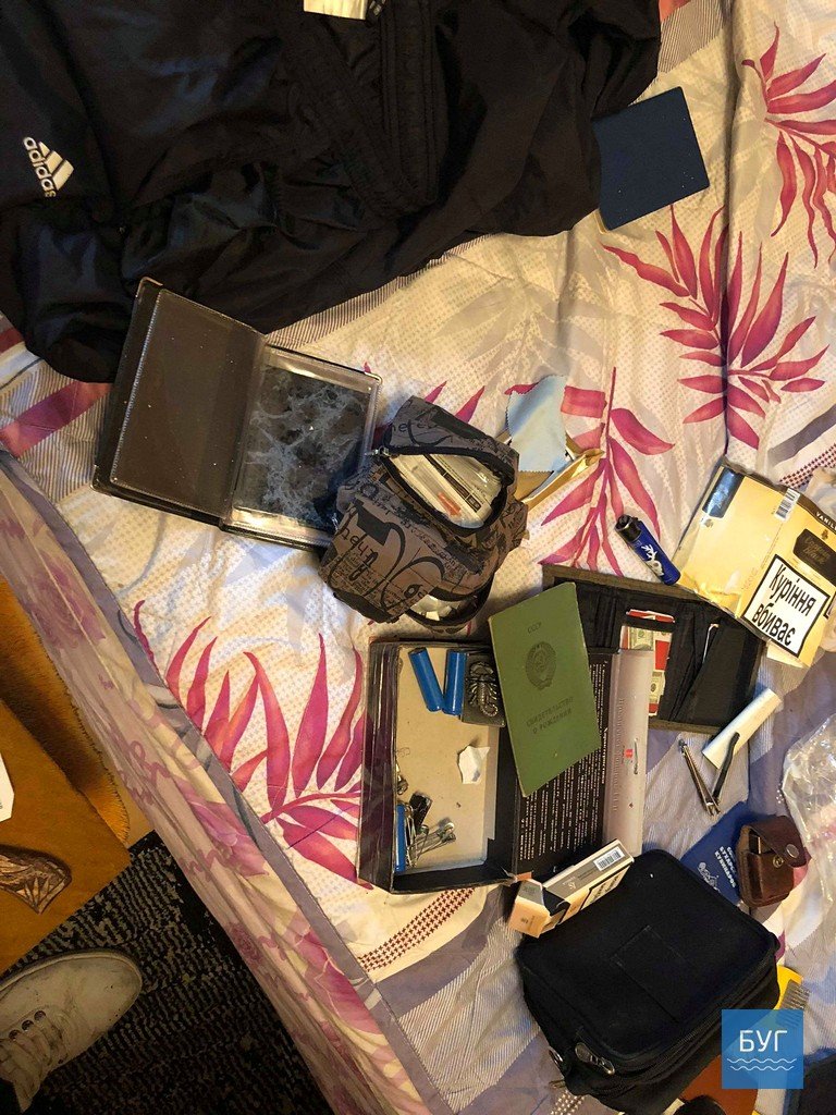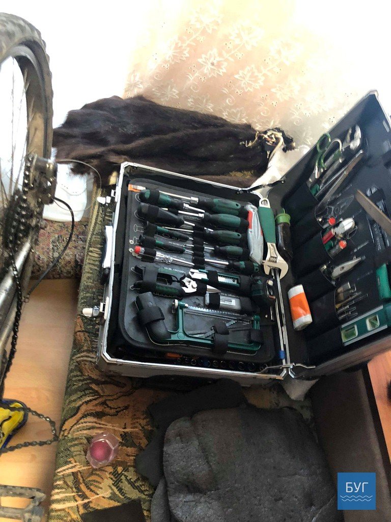 Співробітники управління протидії наркозлочинності провели також санкціонований обшук в помешканні наркоторговця по бульвару Шевченка, 15. У квартирі чоловіка виявили два паперових згортки з речовиною рослинного походження, використані шприци та речі, ймовірно викрадені. Серед них велосипеди, інструменти, сумки з банками шампуню та інші.