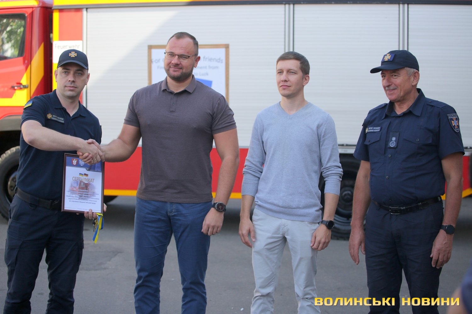 «Щоб у вас було краще матеріально-технічне забезпечення, більше можливостей для роботи, ми хочемо передати вам цей автомобіль, який отримали від німецького міста Швайнфурт. Дай Боже, щоб цей автомобіль якомога менше виїжджав на виклики. Але якщо такі ситуації траплятимуться, то у вас під рукою буде хороша техніка, якою можна буде працювати», – зазначив Ігор Поліщук.Відзначимо, що співпрацю з містом Швайнфурт допоміг налагодити директор компанії SKF Богдан Волчок, зокрема вирішив питання доставки авто до Луцька.