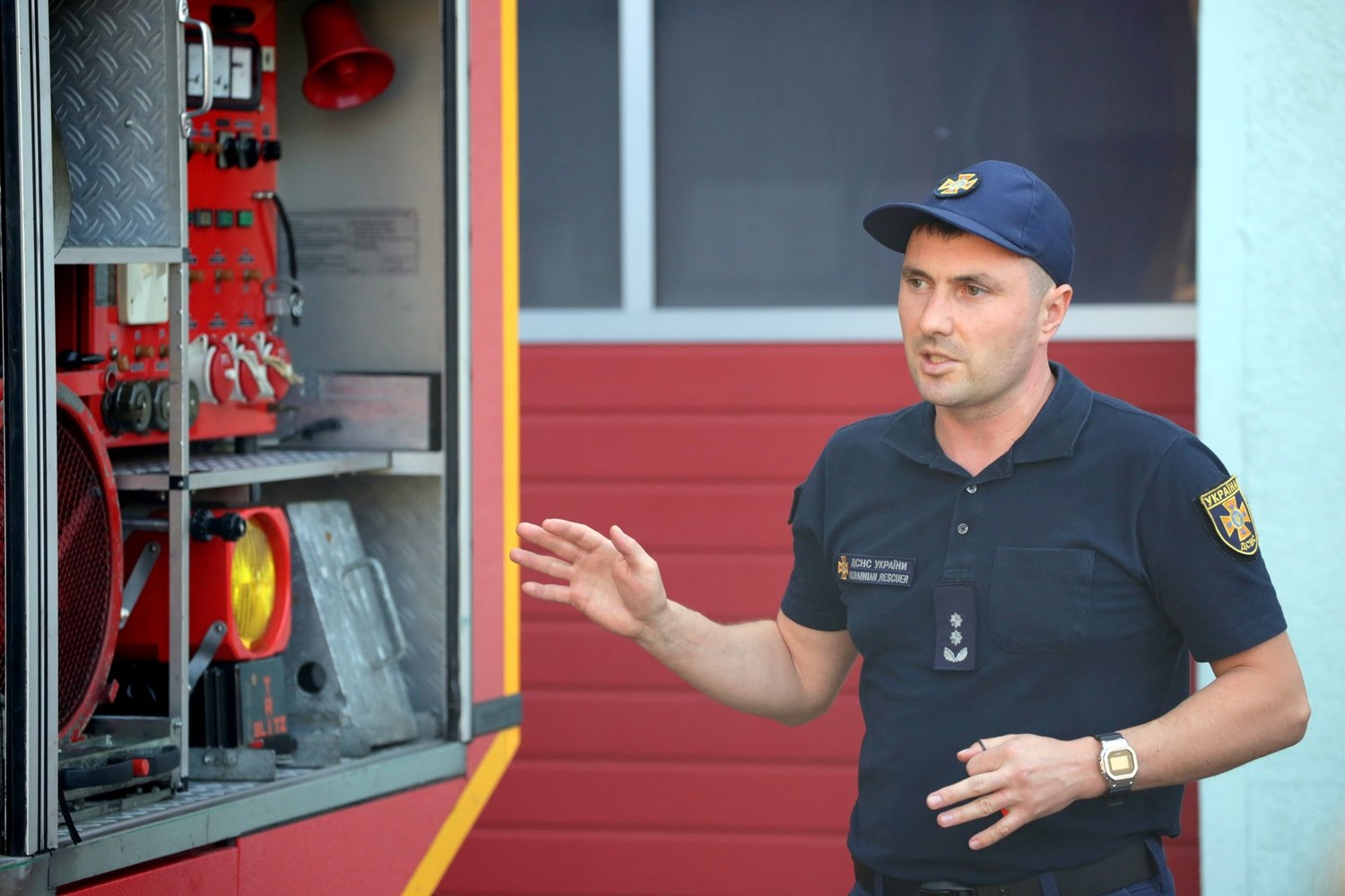 Отримував аварійно-рятувальний автомобіль заступник начальника першого державного пожежно-рятувального загону Руслан Безека, який розповів, що автомобіль відрізняється від класичної пожежної автоцистерни тим, що в ньому відсутній запас води та насос.