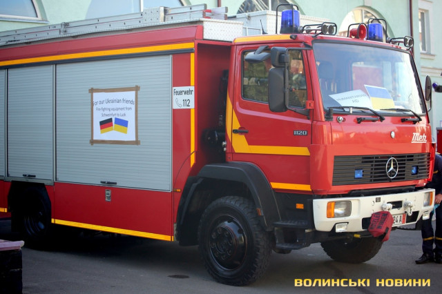 Рятувальники обласного центру Волині за сприяння Луцької міської ради отримали від німецького міста Швайнфурт аварійно-рятувальний автомобіль Mercedes-Benz, укомплектований спеціальними інструментами та обладнанням. Цей автомобіль відрізняється від звичайного пожежного авто, яке має цистерну для води, адже його призначення – допомога у ліквідації надзвичайних ситуацій, зокрема наслідків ДТП та стихійних лих.