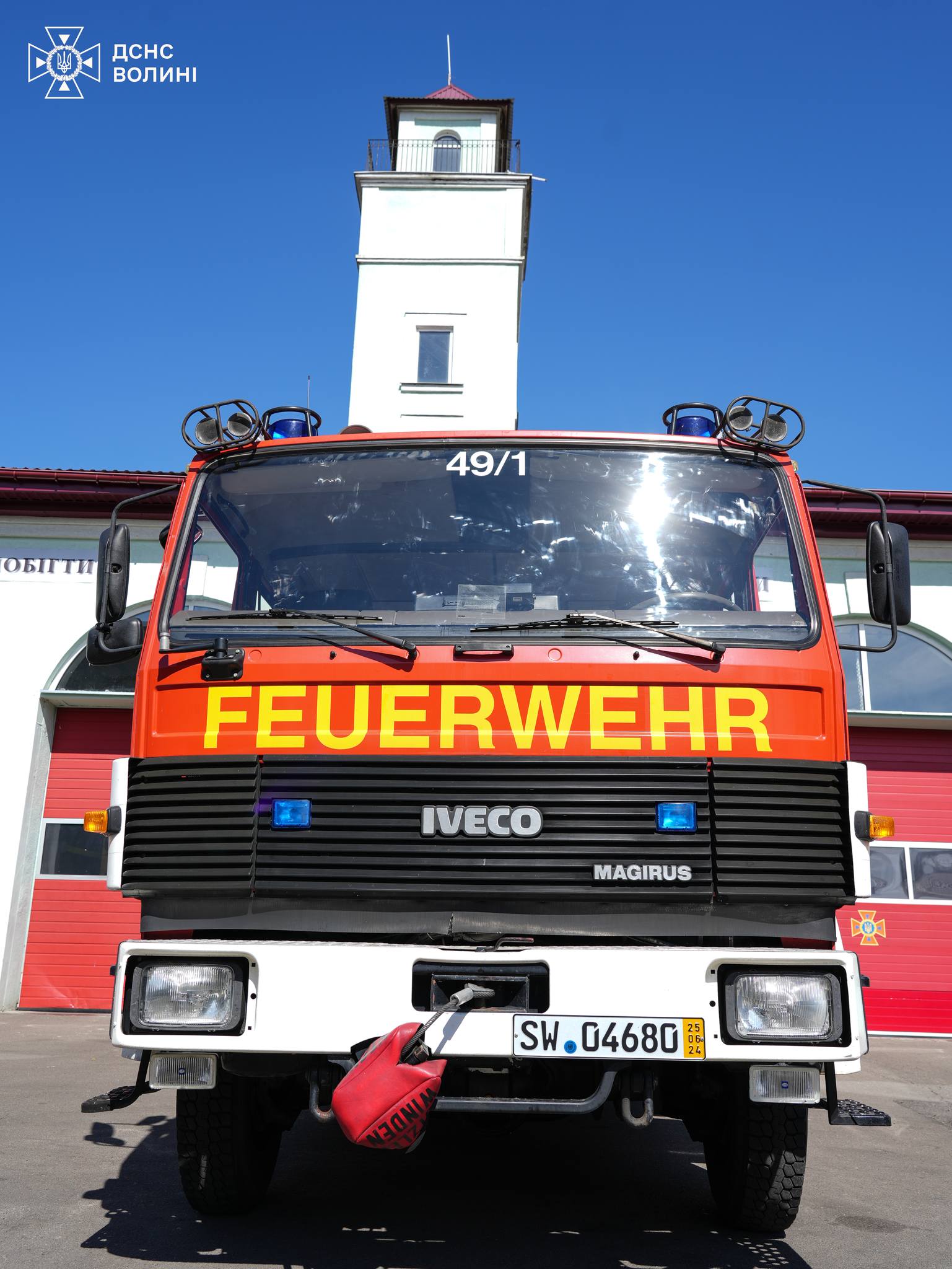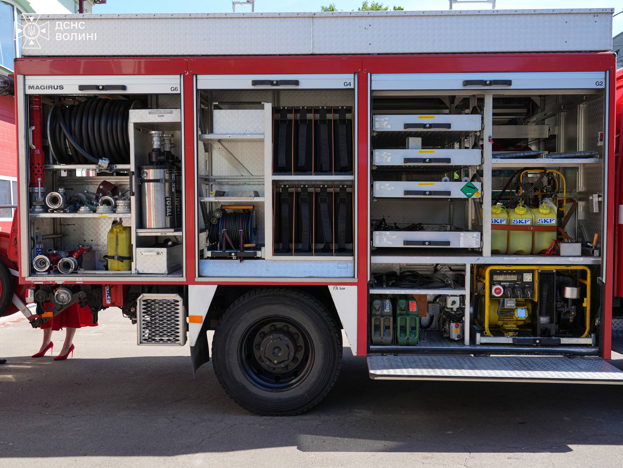 Спеціальний аварійно-рятувальний автомобіль Iveco-Magirus призначений для доставки особового складу та обладнання до місця ліквідації надзвичайних ситуацій, зокрема під час ліквідації наслідків дорожньо-транспортних пригод, повеней, завалів, буревіїв. Техніка також укомплектована спеціалізованими мотопомпами для ліквідації аварій з витоком хімічно небезпечних речовин, пально-мастильних матеріалів, олійних продуктів тощо. Автомобіль, отриманий у якості гуманітарної допомоги від міста Швайнфурт, буде в бойовому розрахунку одного з підрозділів 1-о Державного пожежно-рятувального загону м. Луцька.