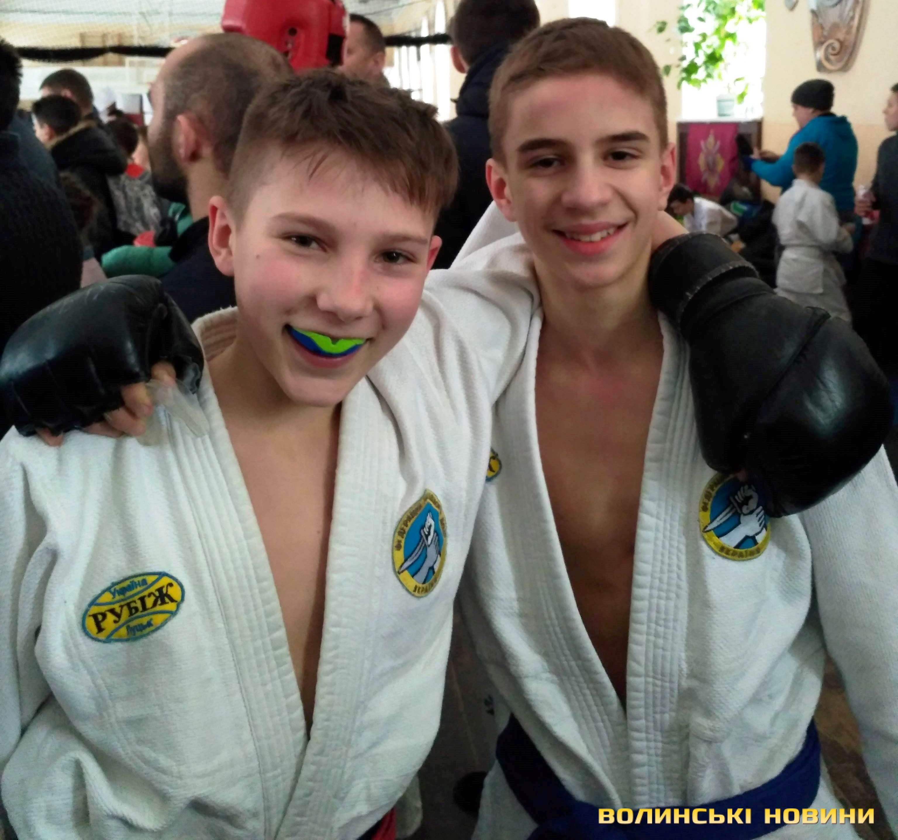 «Тріумфальним став виступ на Чемпіонаті України з рукопашного бою серед школярів вихованців ВРФРБ «РУБІЖ» - учнів Луцької гімназії № 4 Корнія Олексієвця та Нікіти Компанійця. Друзі-товариші у спорті та житті, Корній і Нікіта змагались серед 12-13 річних бійців у ваговій категорії до 45 кг. Поступово здобували перемогу за перемогою в напружених двобоях, причому дострокову перемогу над суперником в одному з них нокдауном здобув Корній, больовим прийомом в іншому – Нікіта. Майстерність та спортивна вдача дозволила хлопцям дійти до фіналу та розіграти між собою престижні нагороди», - каже Сергій Гузов.