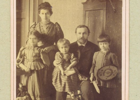 Повернувшись з Відня в середині березня 1891 р., Леся прожила в Луцьку півтора місяця і, виїхавши звідти до Колодяжного, вже більше в Луцьку не бувала...Зліва направо: Ольга Петрівна і Петро Антонович Косачі з молодшими дітьми Оксаною, Ізидорою (на руках у батька), Миколою. Луцьк, 1889 рік