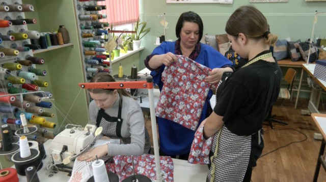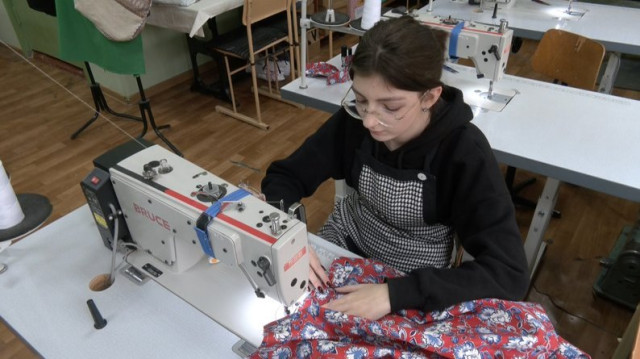 Під час теоретичних занять вивчала технологію пошиття виробів, зараз втілює вивчене на практиці 15-річна студентка Наталія Андрійчук.Читати ще: «Треба хлопцям допомагати»: волинські пенсіонерки шиють бурки для військових