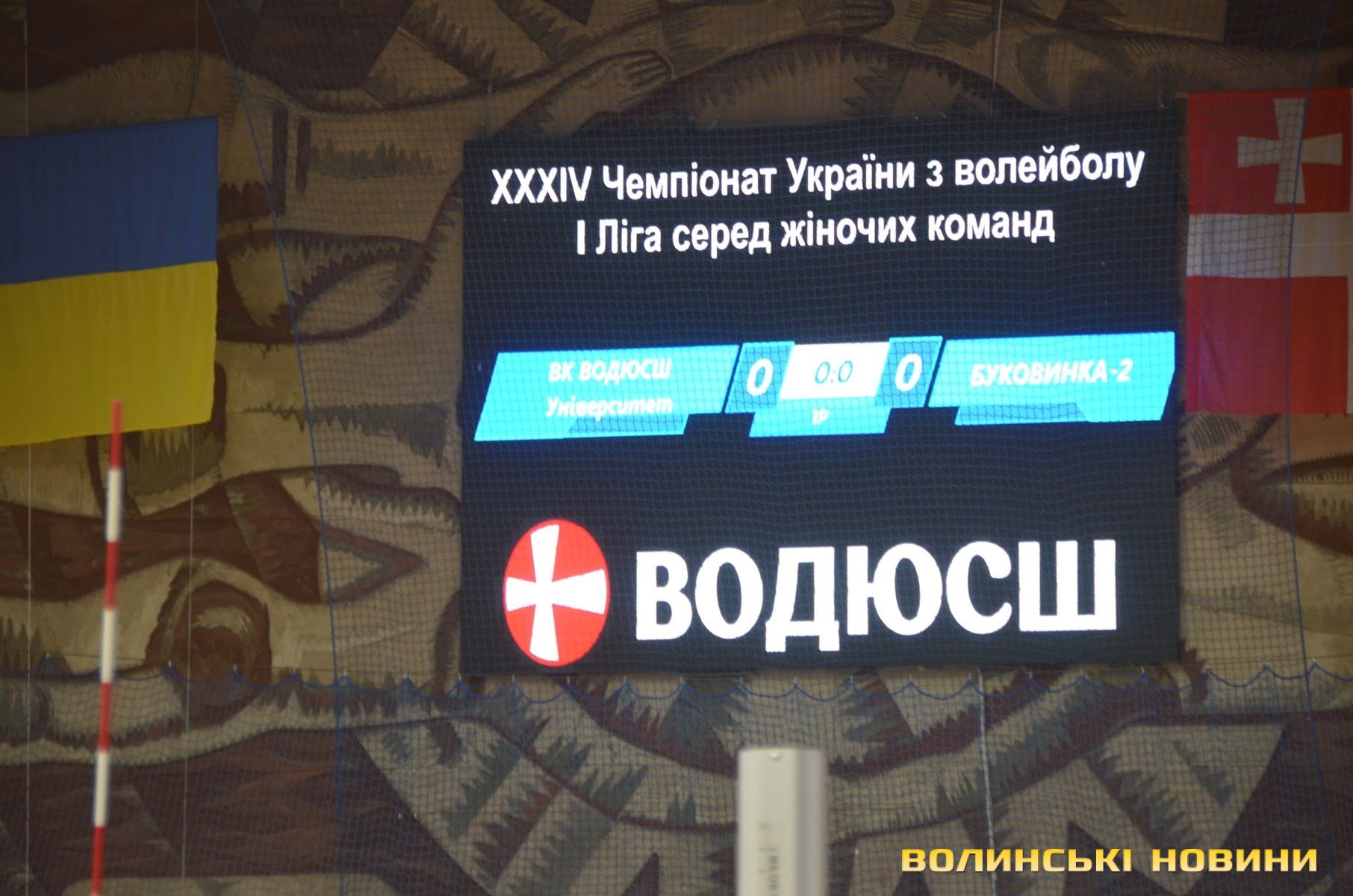 Після вітальних слів розпочався матч «ВОДЮСШ-Університет» та «Буковинки-2». Лучанки впевнено виграли першу партію – 25:11. На початку другої дівчата трішки розслабилися, тому на табло світилося 1:8. Але вчасний тайм-аут від тренерів допоміг змінили ситуацію – 25:20. Третя партія лише закріпила перевагу місцевих волейболісток – 25:19.