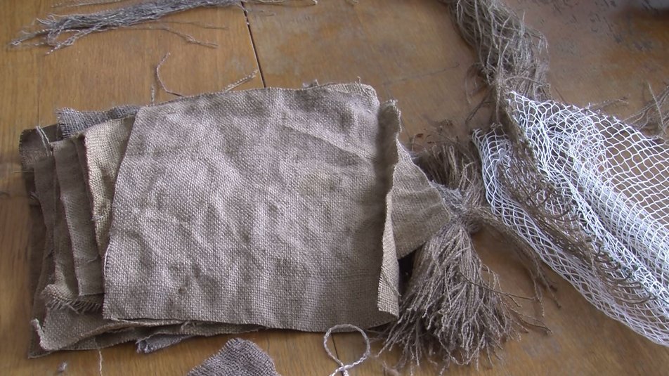 Для того, щоб сплести маскувальний костюм, до основи – рибальської сітки – потрібні нитки.