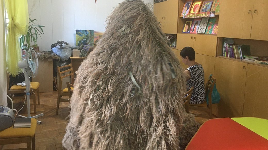 У бібліотеках Луцька плетуть маскувальні костюми для розвідників та снайперів. Роботу поділили на два етапи: одні волонтери скубуть нитки, інші вплітають їх у рибальські сітки. Робота технічно важка.