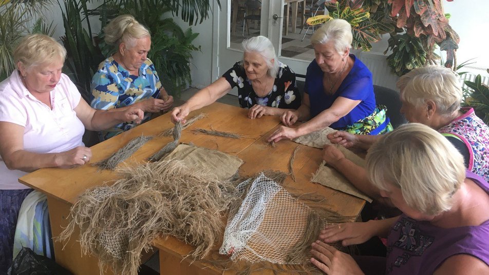 «Вирізаються квадратики та ми смикаємо ті ниточки. Складаємо по розмірах, а коли вже насмикаємо ті нитки, то передаємо, щоб плели», – говорить Славомира Тумакова.
