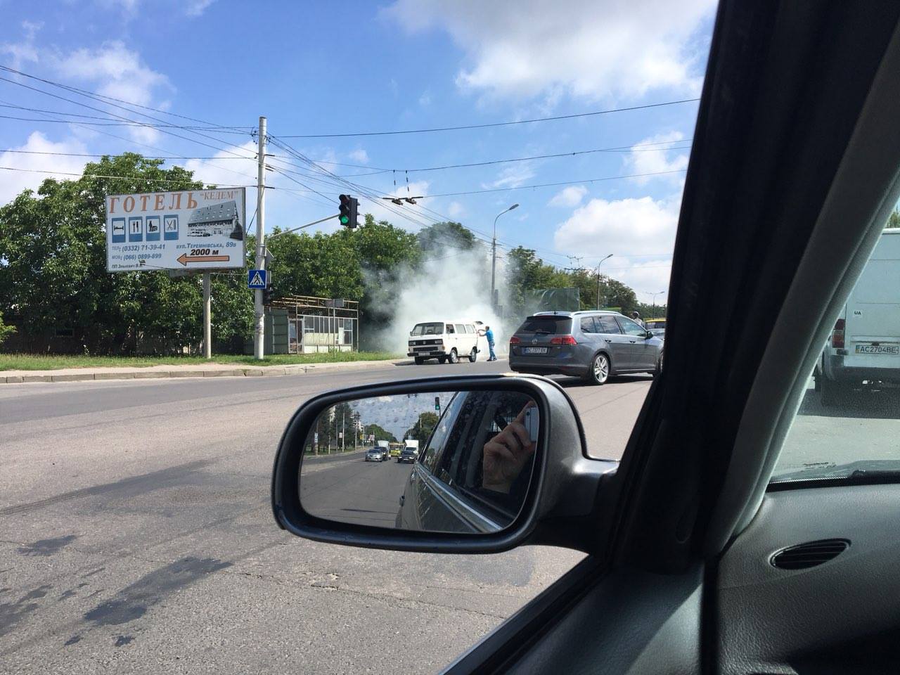 "5 хв назад, Окко на Рівненській. Гарний Т3 загорівся( Браво заправники з ОККО, за хвилину підбігли із своїми здоровенними вогнегасниками і все загасили. Якби не вони, думаю, згорів би, бо двигун в нього позаду в підлозі схований. Загасити маленькими не просто, тим більше, коли вже горить соляра", - йдеться у дописі.