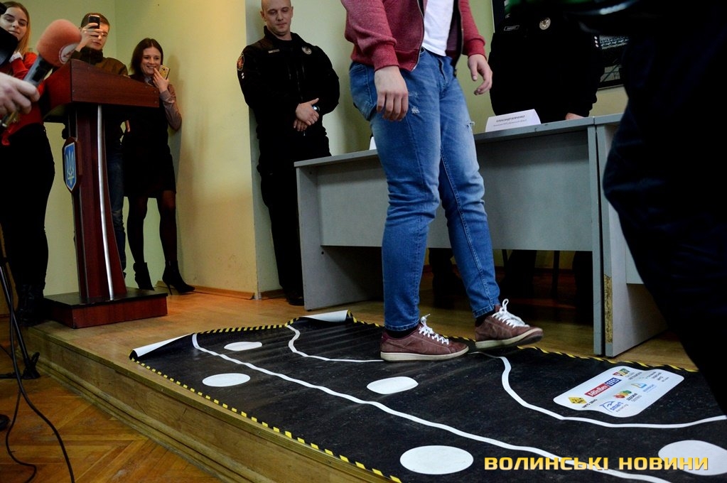 Так, працівникам луцьких медіа запропонували випробувати на собі п’яні окуляри та пройти в них по лінії, що виявилося вкрай важким завданням для багатьох медійників.