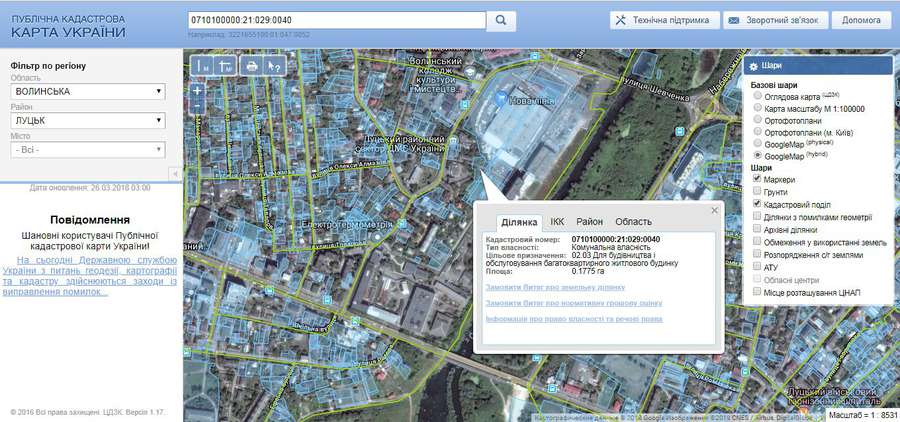Цільове призначення земельної ділянки - для будівництва і обслуговування багатоквартирного житлового будинку. До слова, до 2017 року її цільове призначення було «для обслуговування адміністративних та господарських споруд».