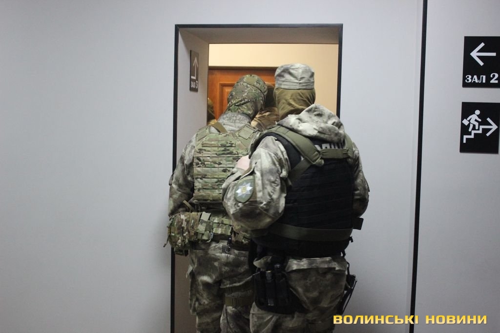 У супроводі правоохоронців затриманого доставили у судову залу. Захисник просив заборонити відеозйомку, щоб не нашкодити репутації підзахисного.Однак головуючий суддя Ярослав Артиш зауважив, що оксільки справа розглядається не у закритому режимі і має суспільний інтерес, то зйомку дозволив.