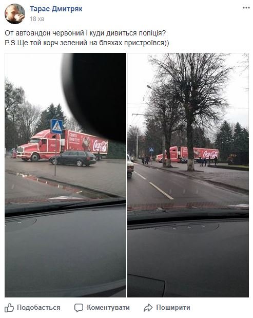 ЯКБИ це була брендова фура із Д.ТРАМПОМ, а не з СОСА-COLOю ,то куди не йшло, можна фоткатись! А Як низько українці впали , що фоткатись на фоні якось фури на БЛЯХАХ!!! Оце дивину влаштували!
