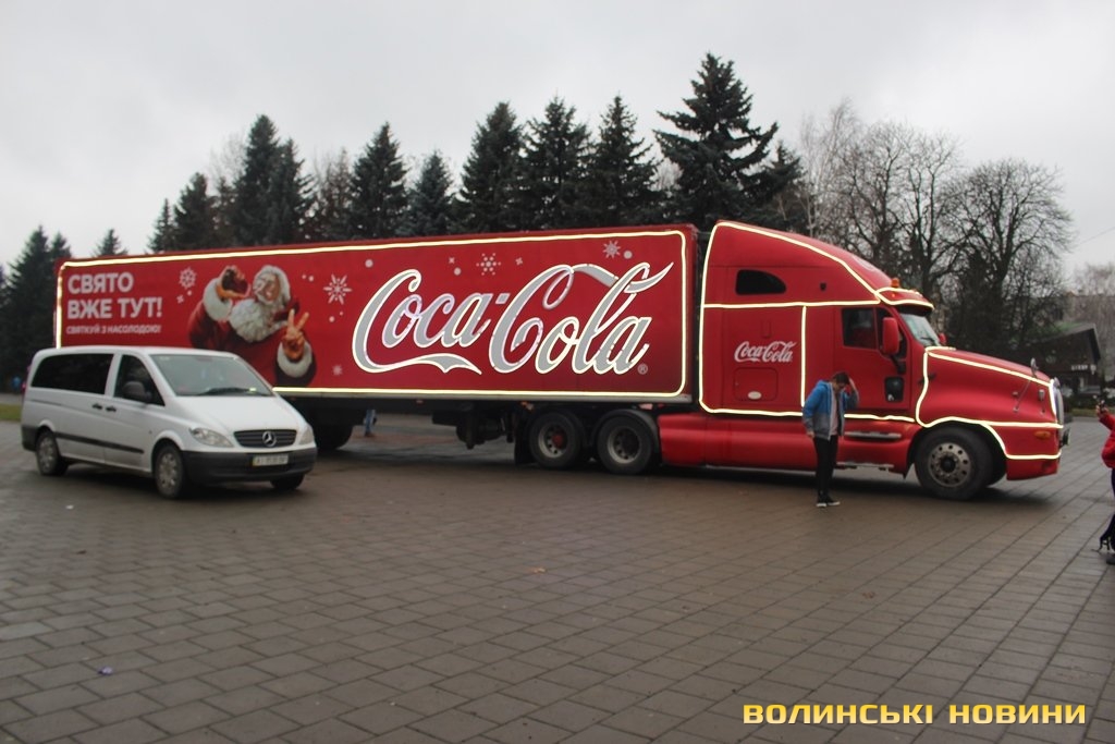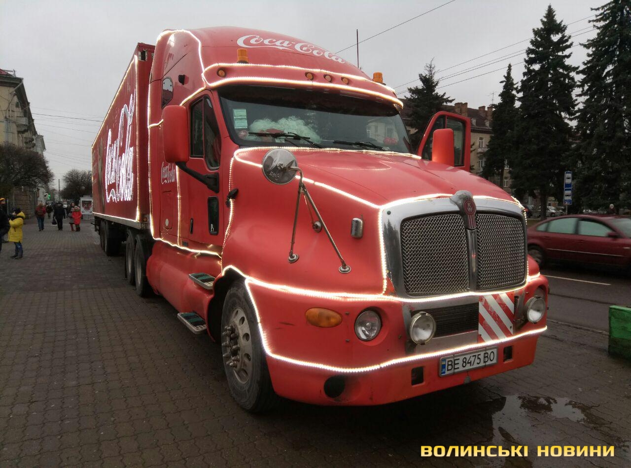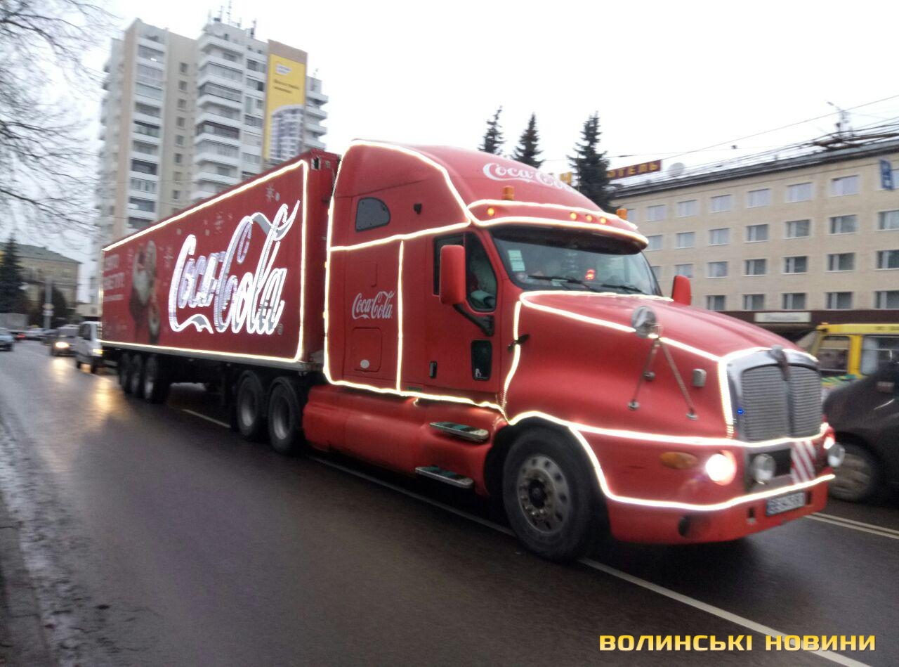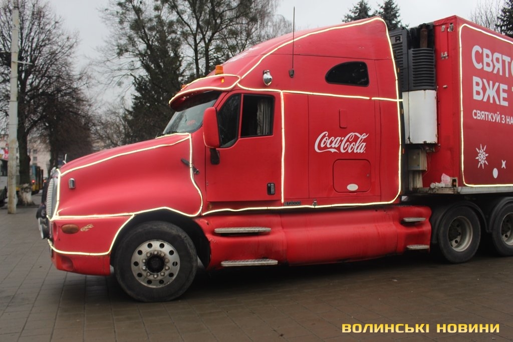 Луцьком кружляє святкова вантажівка Coca-Cola. Фото