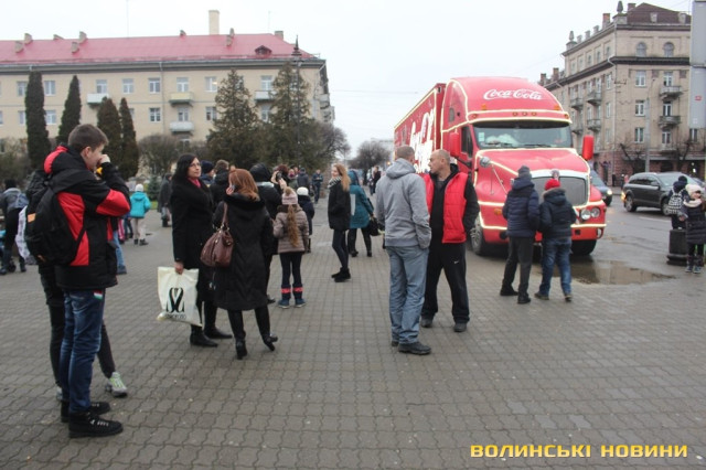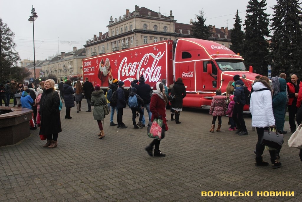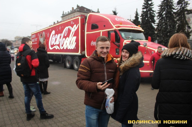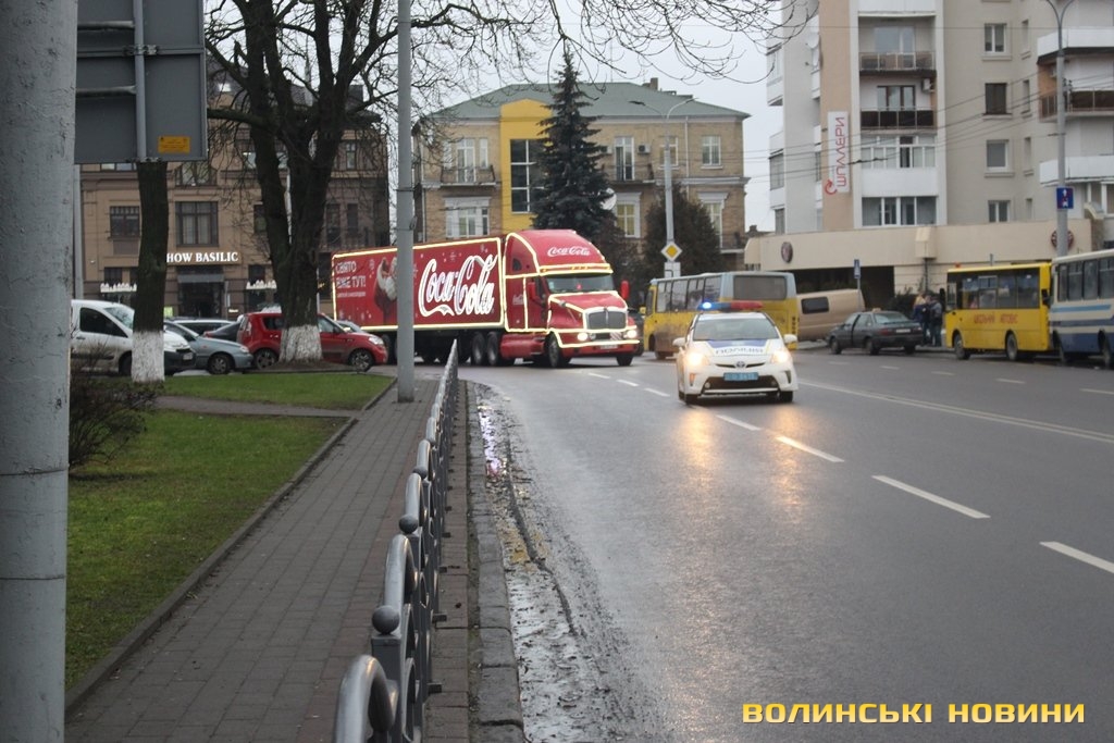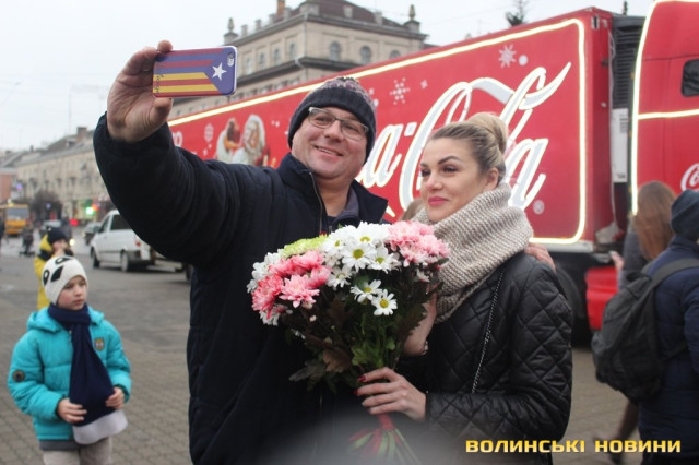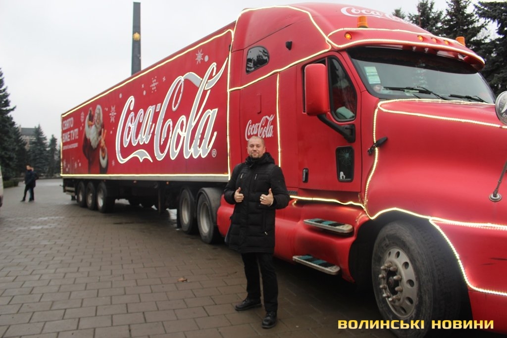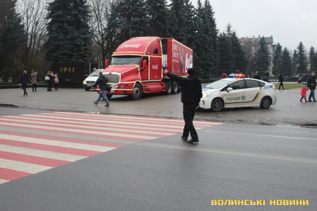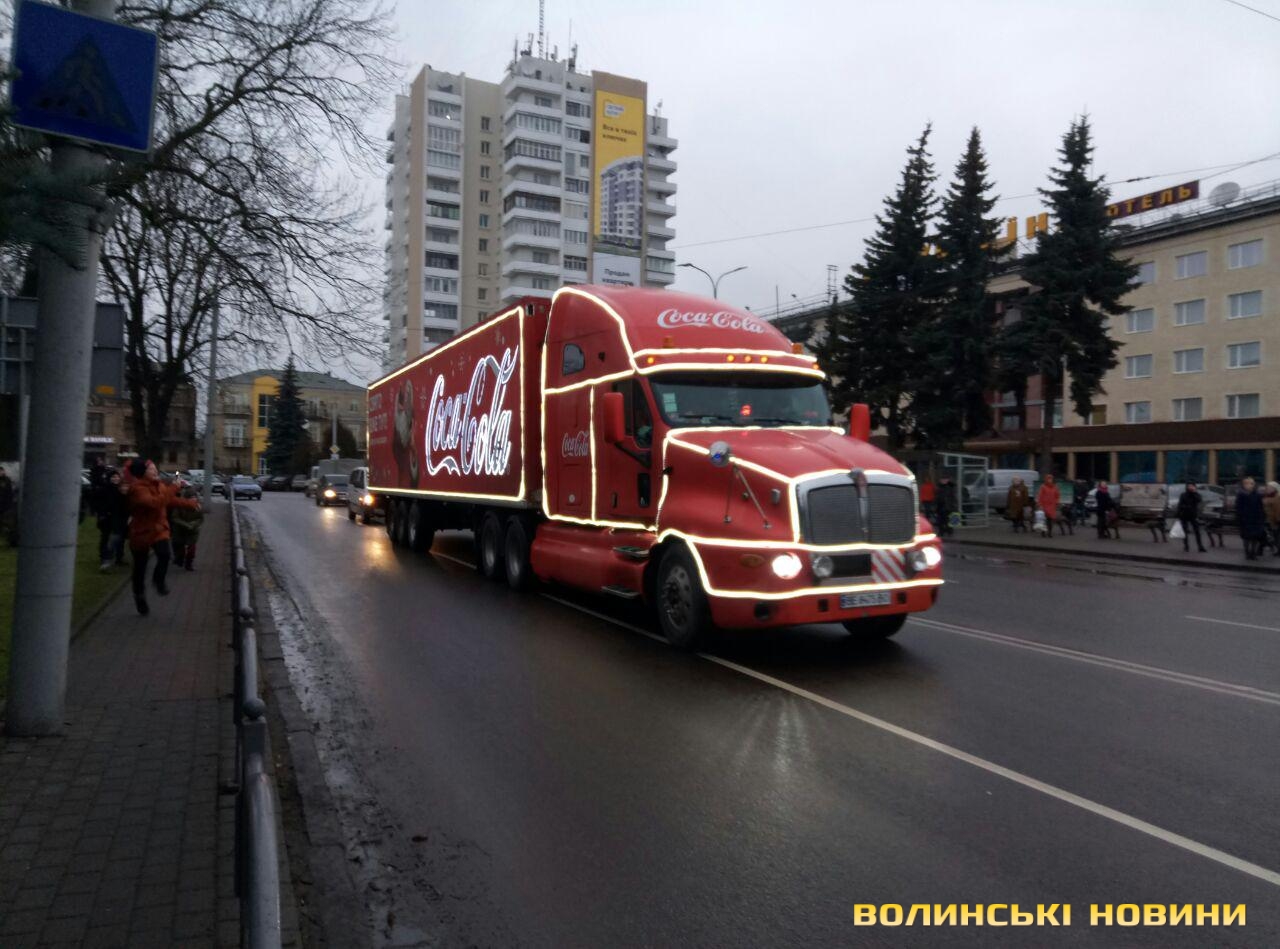Луцьком кружляє святкова вантажівка Coca-Cola. Фото