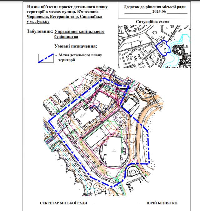 За проєкт рішення проголосували 22 обранці громади. Управління капітального будівництва міської ради забезпечить розроблення проєкту детального плану території в межах вулиць В’ячеслава Чорновола, Ветеранів та річки Сапалаївка, залучивши кошти з інших джерел, не заборонених законом.