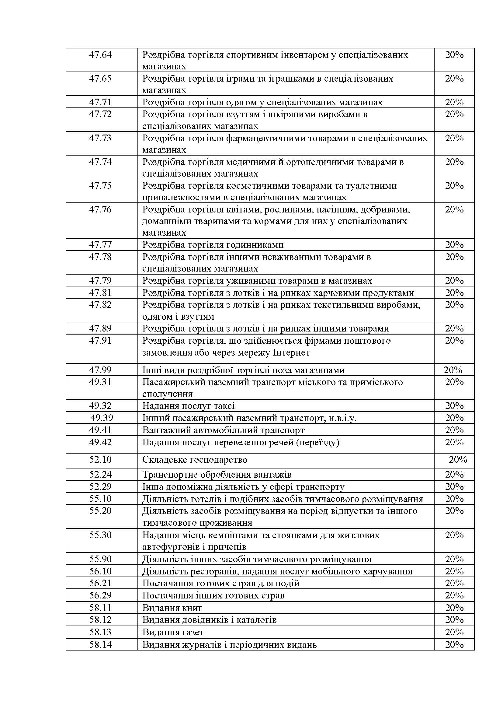 «Буде пропозиція в цьому рішенні у додатку 2 по кодах 4781 4782 4789, які об’єднують в собі роздрібну торгівлю з лотків і на ринках, зменшити ставку податку із 20 до 17%. До нас неодноразово зверталися підприємці, оскільки через карантинні обмеження та у зв’язку із простоями усьому бізнесу важко, а підприємцям малого бізнесу особливо», - зазначив обранець громади.