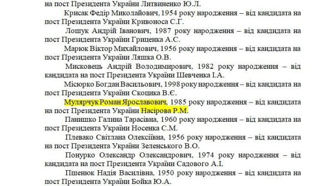 Представник волинського осередку партії БПП «Солідарність» Роман Мулярчук увійшов до окружної виборчої комісії від кандидата в президенти Романа Насірова.