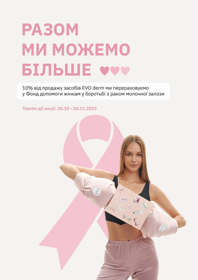 До 20 листопада 10% від продажів усіх засобів EVO derm та безшовних топів Anabel Arto переказуватимуть фонду Inspiration Family, що допомагає жінкам у боротьбі з раком молочної залози.