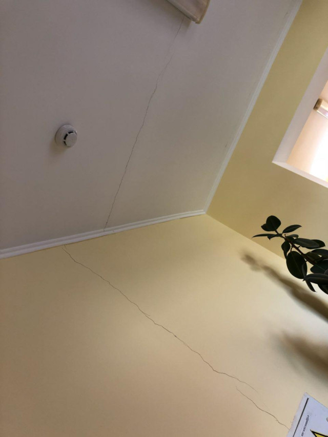 Він по швах почав тріщати вже через рік. Ми були перші хто пішов в садочок після його здачі то мусили стелю ремонтувати бо штукатурка сипалась дітям на голову в спальні. А тріщини на стінах на 2 рік з'явились.