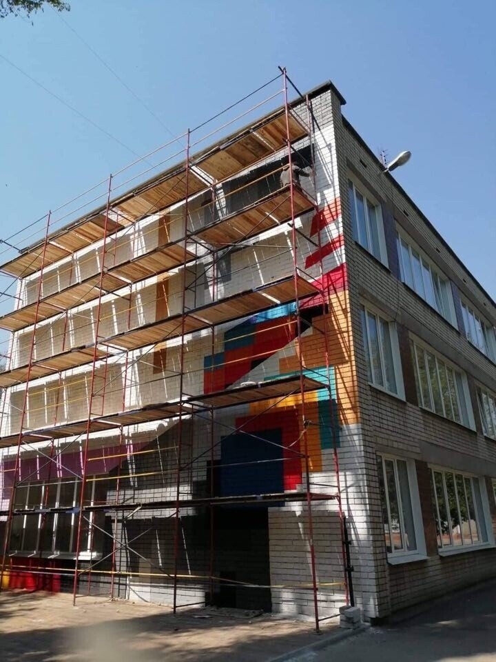 Художник Андрій Кальков із Луцька у Запоріжжі намалював малюнок на будівлі Запорізької школи мистецтв №3.