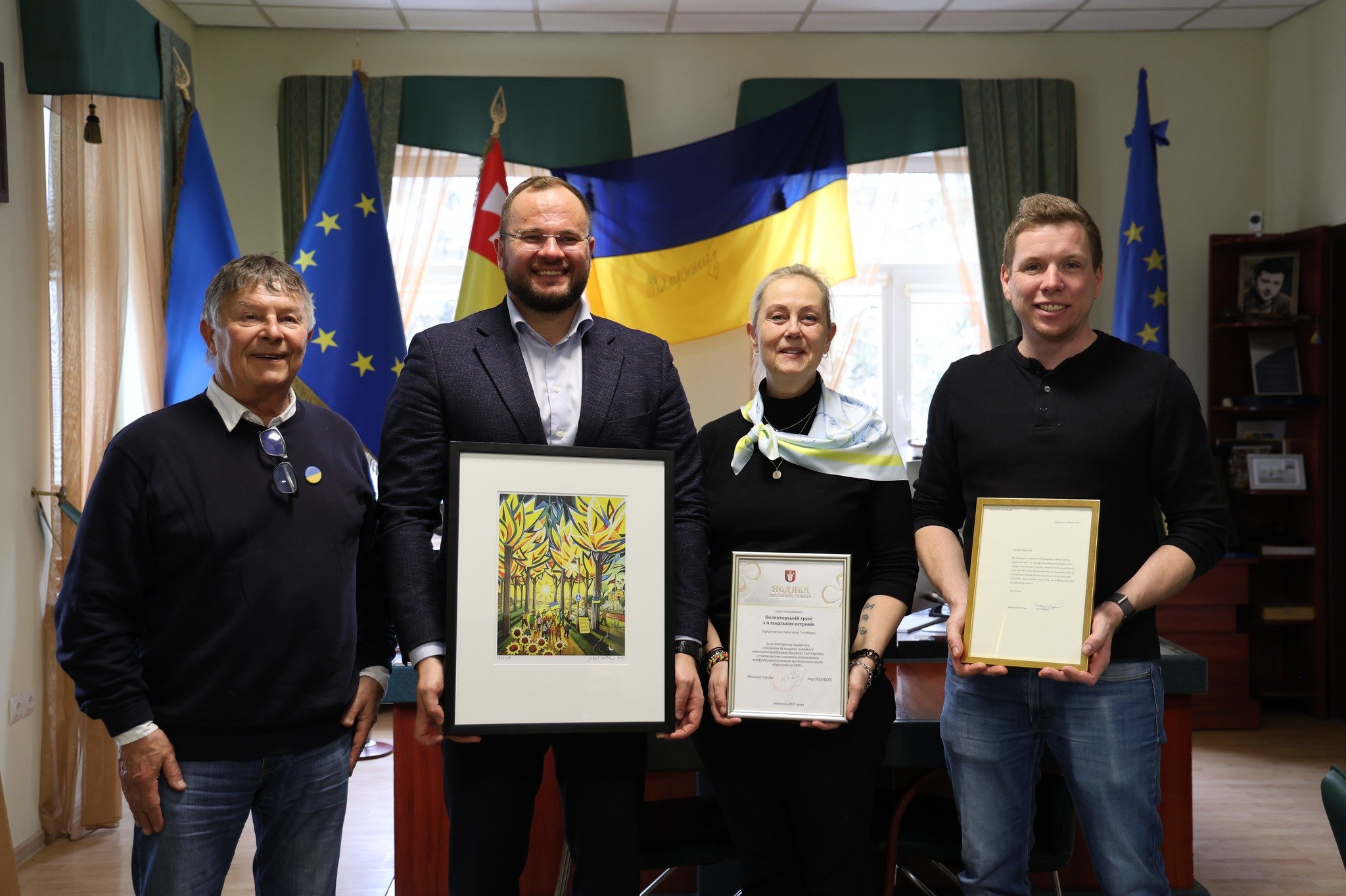 Сьогодні міський голова Ігор Поліщук зустрівся з представниками волонтерської групи з Аландських островів (Фінляндія), яку очолила Моніка Вонфренкель – офіційна представниця міжнародної організації Ротарі клуб в Україні.