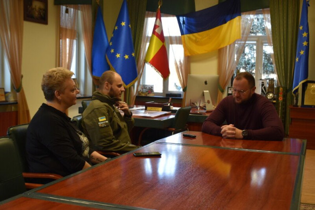 Луцький міський голова зустрівся зі звільненим з полону морським піхотинцем Дмитром Селютіним
