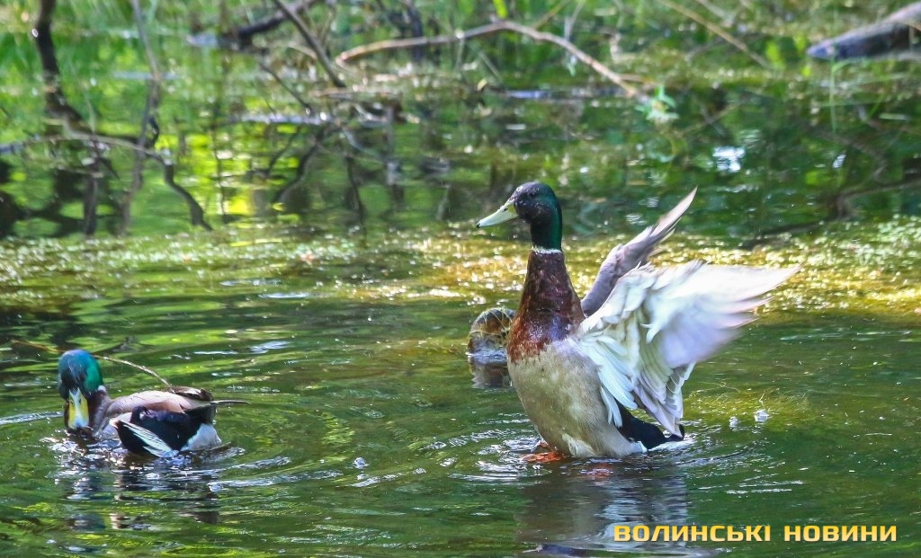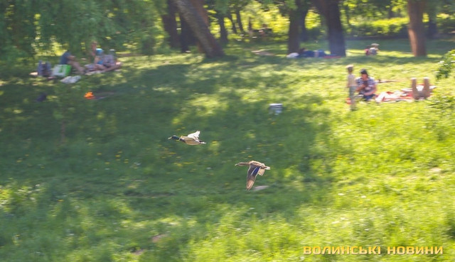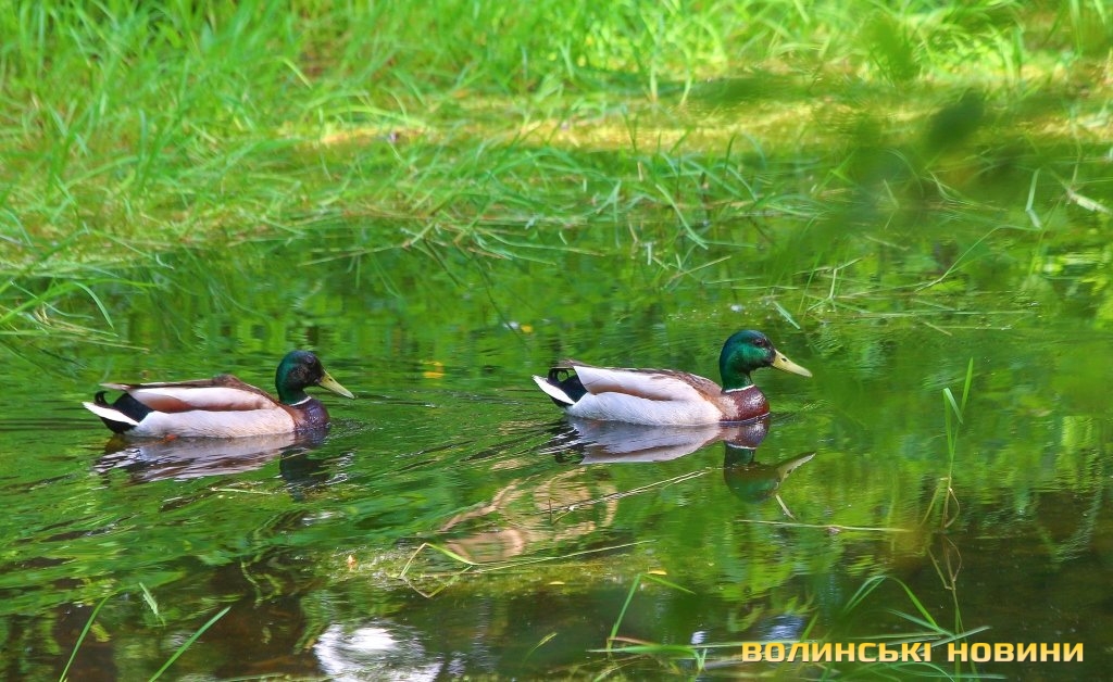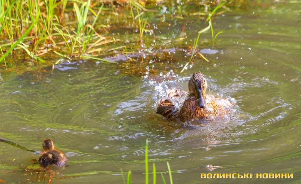 Пошуки поживи у луцьких водоймах, порятунок від спеки серед густого гілля та високих трав, догляд за маленькими каченятами та голосний плюскіт води: своє життя поряд з домівками тисяч лучан ведуть сімейства качок і іноді, аби спостерігати за цими невгамовними та кумедними птахами достатньо лише прогулятися вздовж річки у парку. Щоденні турботи та розваги качок у зеленому оазисі серед велелюдних мікрорайонів спекотного Луцька – у фоторепортажі Інформаційного агентства Волинські Новини.