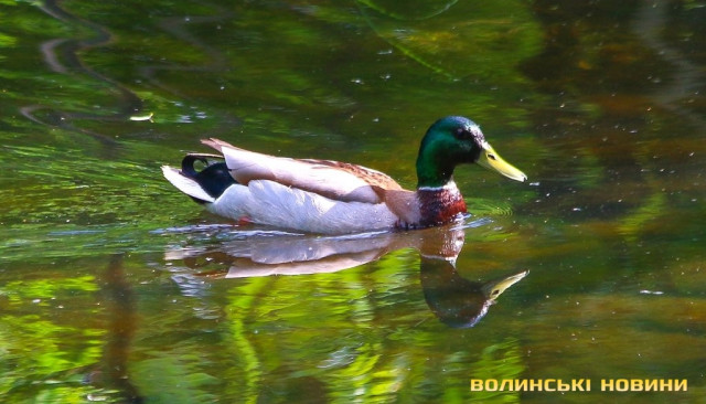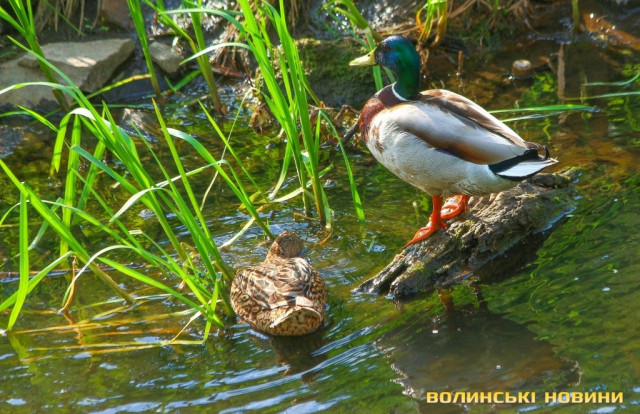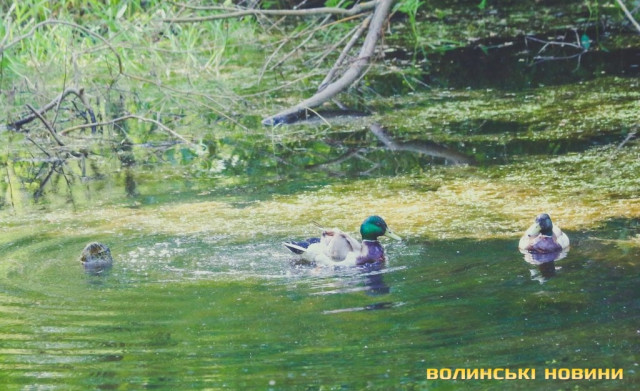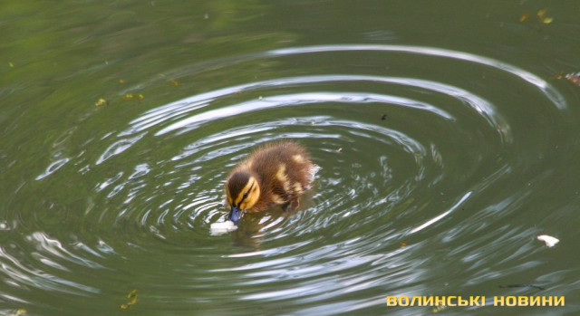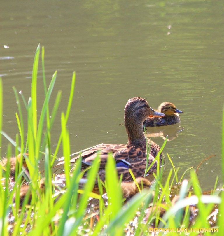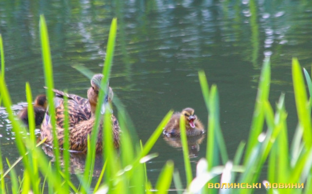 Зовсім поруч з багатоповерхівками та гамірними проспектами розпеченого сонцем міста у затишних куточках парку імені 900-річчя Луцька знаходять притулок цілі качині родини.