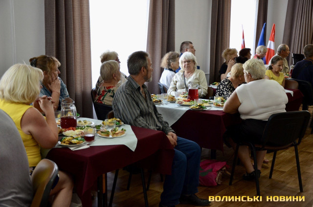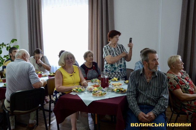 Також для 25 підопічних працівники територіального центру 22 серпня підготували частування та концертну програму. Патріотичні композиції презентував музичний колектив церкви Введення в храм Пресвятої Богородиці Волинської єпархії Православної церкви України.«Ми хотіли порадувати наших людей, хоча би трошки їх психологічно розвантажити, щоби вони відчули підтримку. Хочемо подякувати Луцькому міському голові Ігорю Поліщуку та всьому депутатському корпусу міської ради за те, що маємо можливість харчувати людей у нашій їдальні, що можемо придбати їм продукти харчування за кошти бюджету громади», – сказала Галина Шатецька.