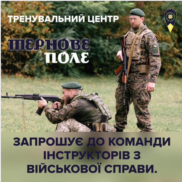 Охочі долучитися до колективу інструкторів тренувального центру «Тернове Поле» пройдуть фахову підготовку за стандартами НАТО. Усіх зацікавлених просять зголошуватися в приватні повідомлення.