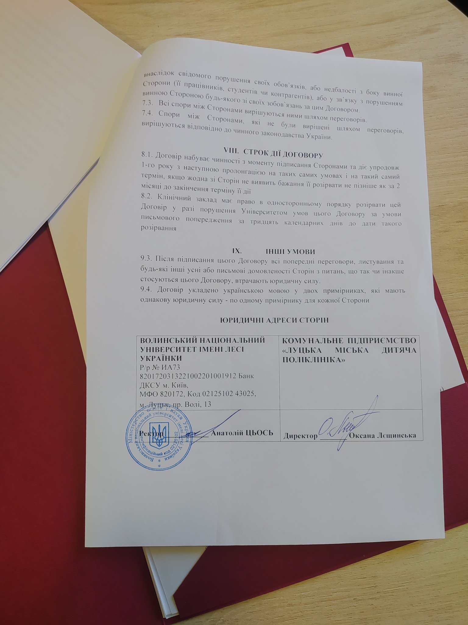 Сьогодні КП «Луцька міська дитяча поліклініка» та Волинський національний університет ім. Лесі Українки підписали спільний Договір про співпрацю.