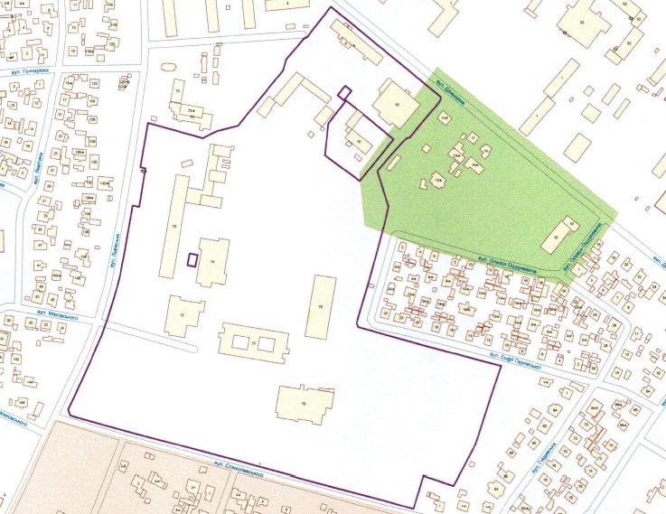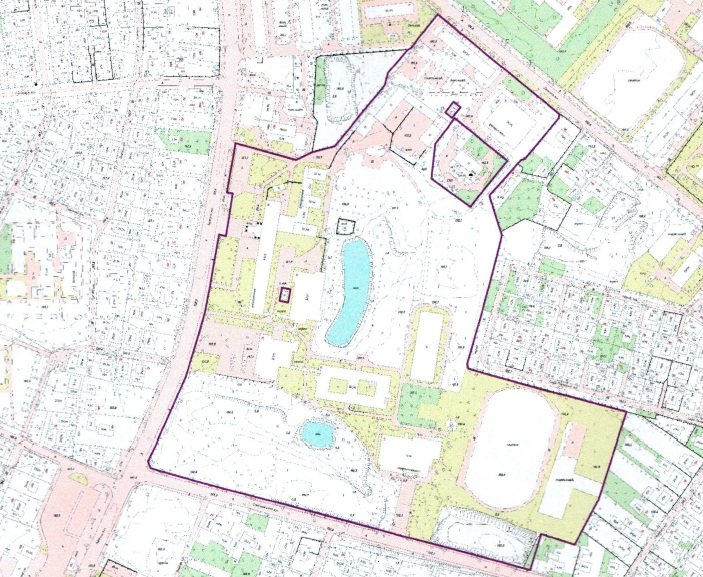 Категорія земель ділянки площею 15,46 гектара – землі житлової та громадської забудови, вид використання ділянки – для обслуговування навчального закладу. Граничнодопустима висотність споруди – до п’яти метрів. Ділянка розташована на підтоплених територіях.