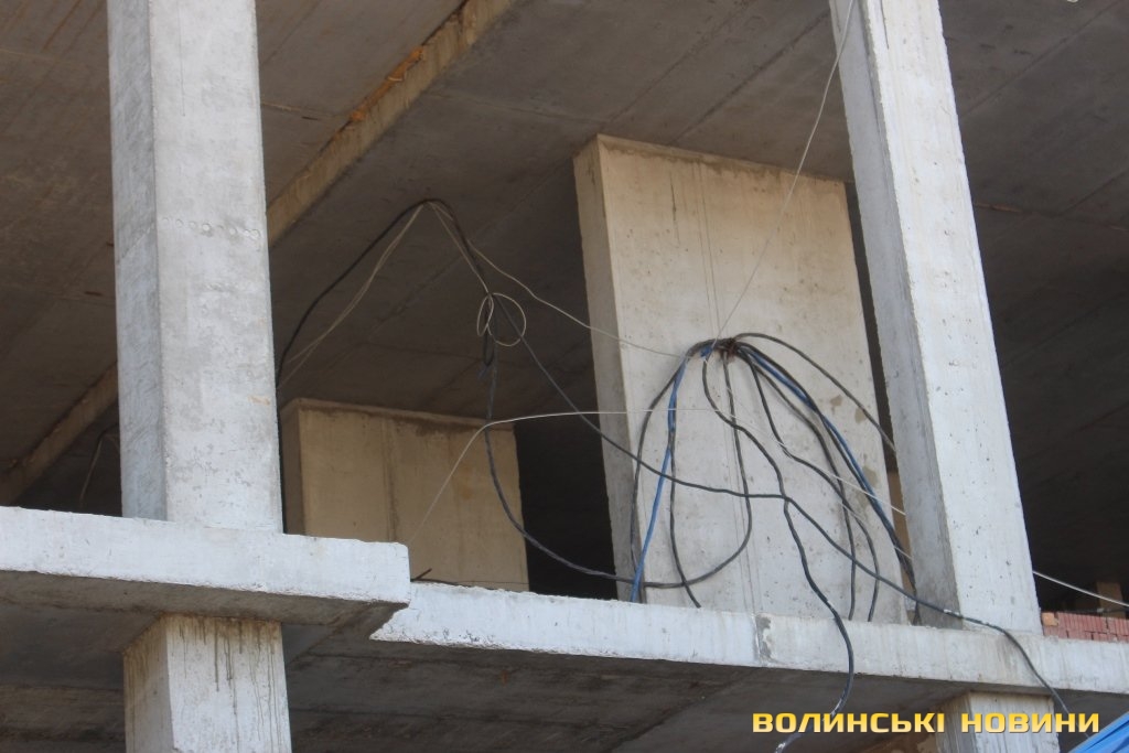 Із цією будівлею було чимало проблем, адже через нефахове виконання робіт будинок поряд почав руйнуватися. Відтак, будівельники останній бетон залити торік в грудні, й відтоді будмайданчик затих.