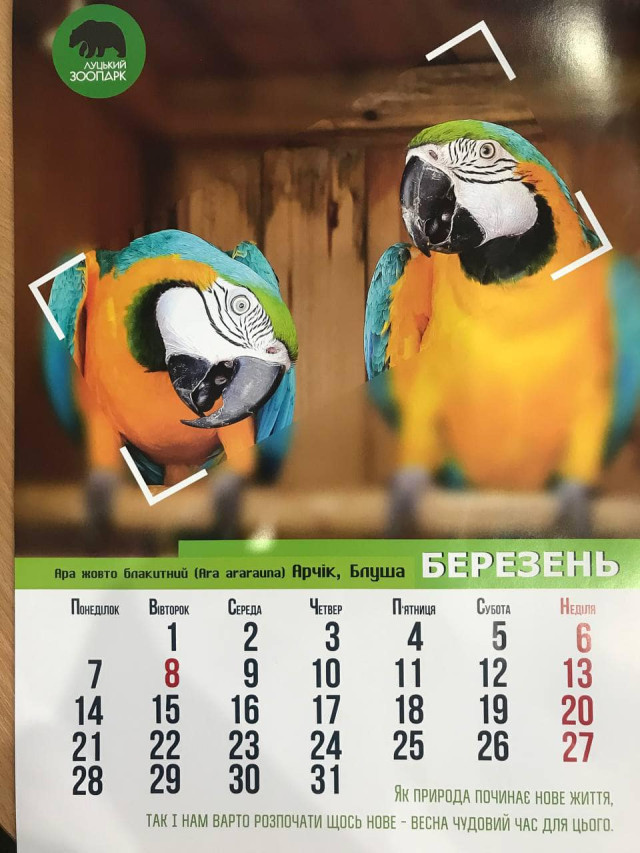 Напередодні Нового року Луцький зоопарк випустив календар, на якому зображено його мешканців.
