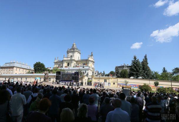 Більше тисячі людей після відслужіння архієрейської літургії у церкві св. Юра вирушили вулицями міста до храму Архістратига Михаїла монастиря монахів студійського уставу.