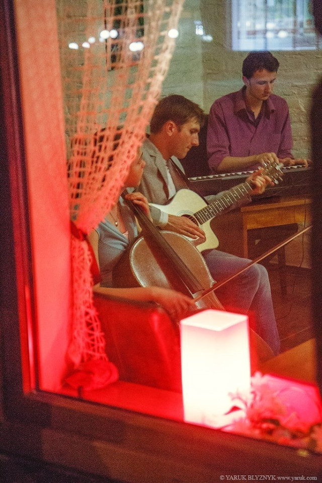 Вечір. Люди сходяться до кав’ярні, музиканти відпочивають та готуються до першого виступу.