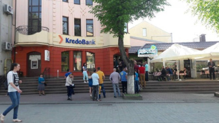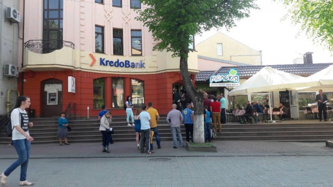 Волиняни з самого ранку утворили довжелезну чергу перед входом до «Кредобанку».