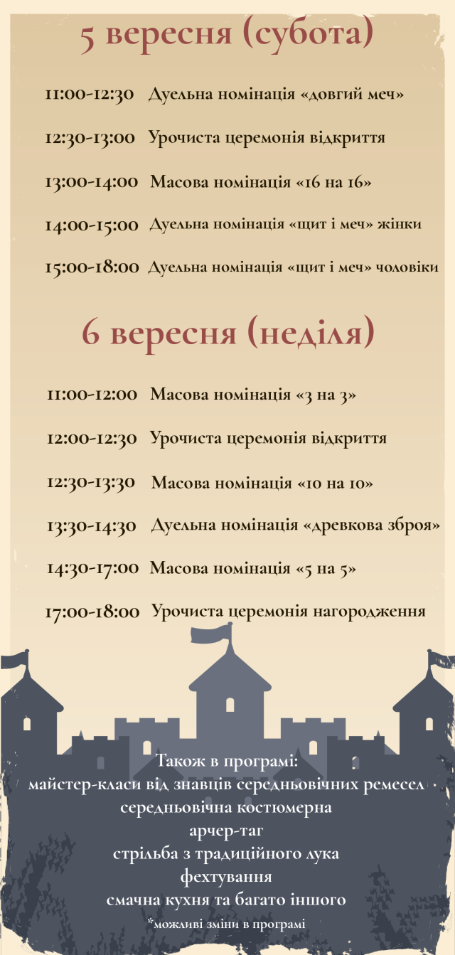 Вже у ці вихідні, 5 та 6 вересня, у замку Любарта пройде наймасштабніший лицарський турнір Західної України. Близько 100 учасників зі всієї України приїдуть у Луцьк, щоб дізнатися, хто наймогутніший лицар країни.