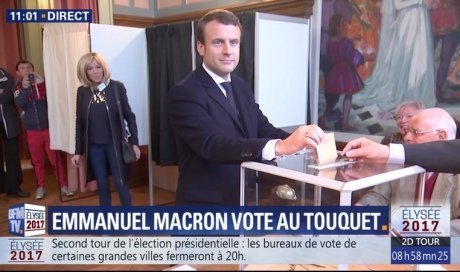 Макрон голосував у невеликому містечку Ле Туке в департаменті Па-де-Кале, де розташований будинок його дружини. Перш ніж йти голосувати, кандидат довго вітав натовп, що зібрався перед його будинком.