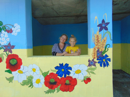 Мама з дітьми розмалювали на Волині автобусну зупинку
