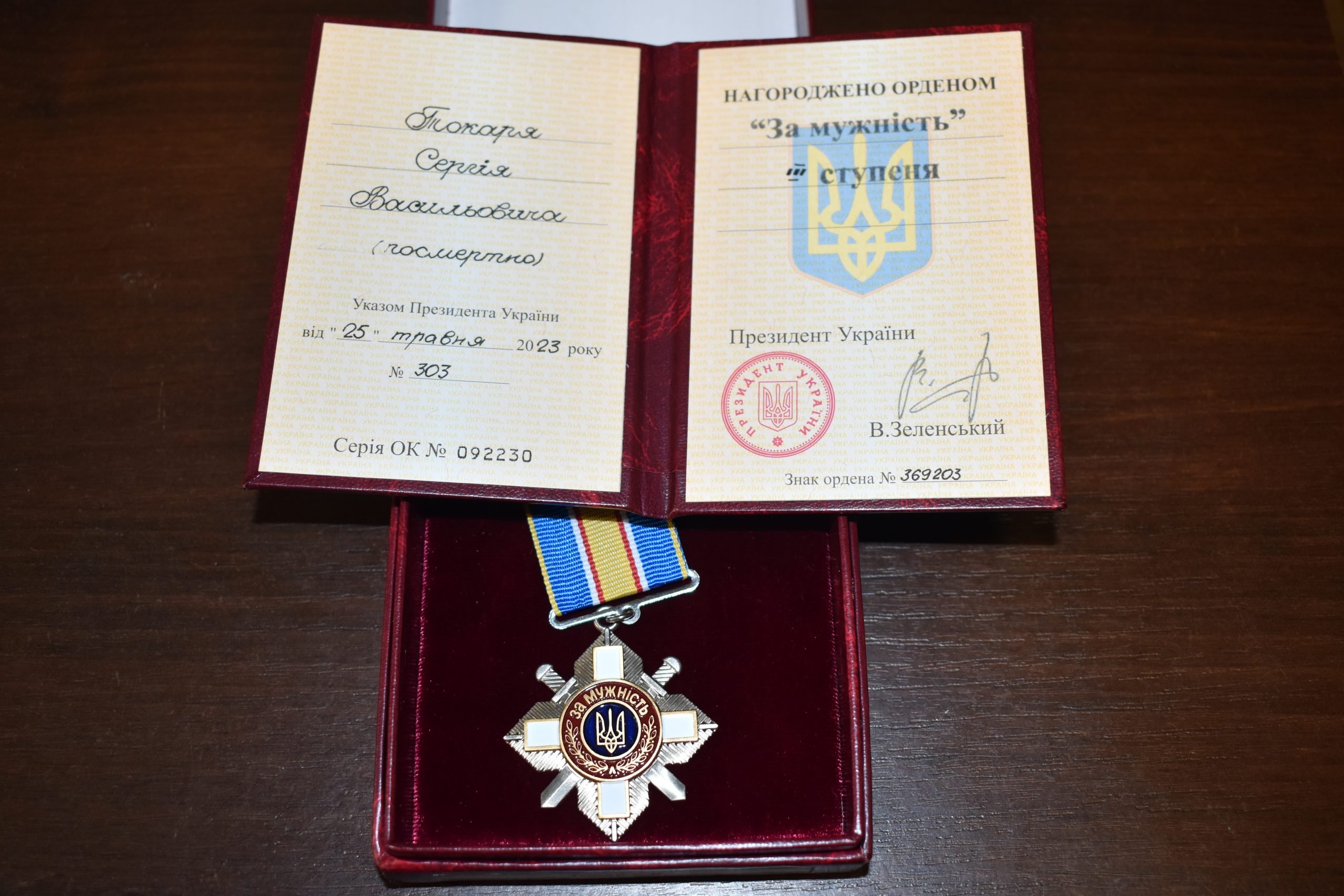 Орден «За мужність» ІІІ ступеня, якого посмертно удостоєно загиблого бійця з Лобни на Любешівщині Сергія Токаря, отримала його мама Олена Олексіївна.