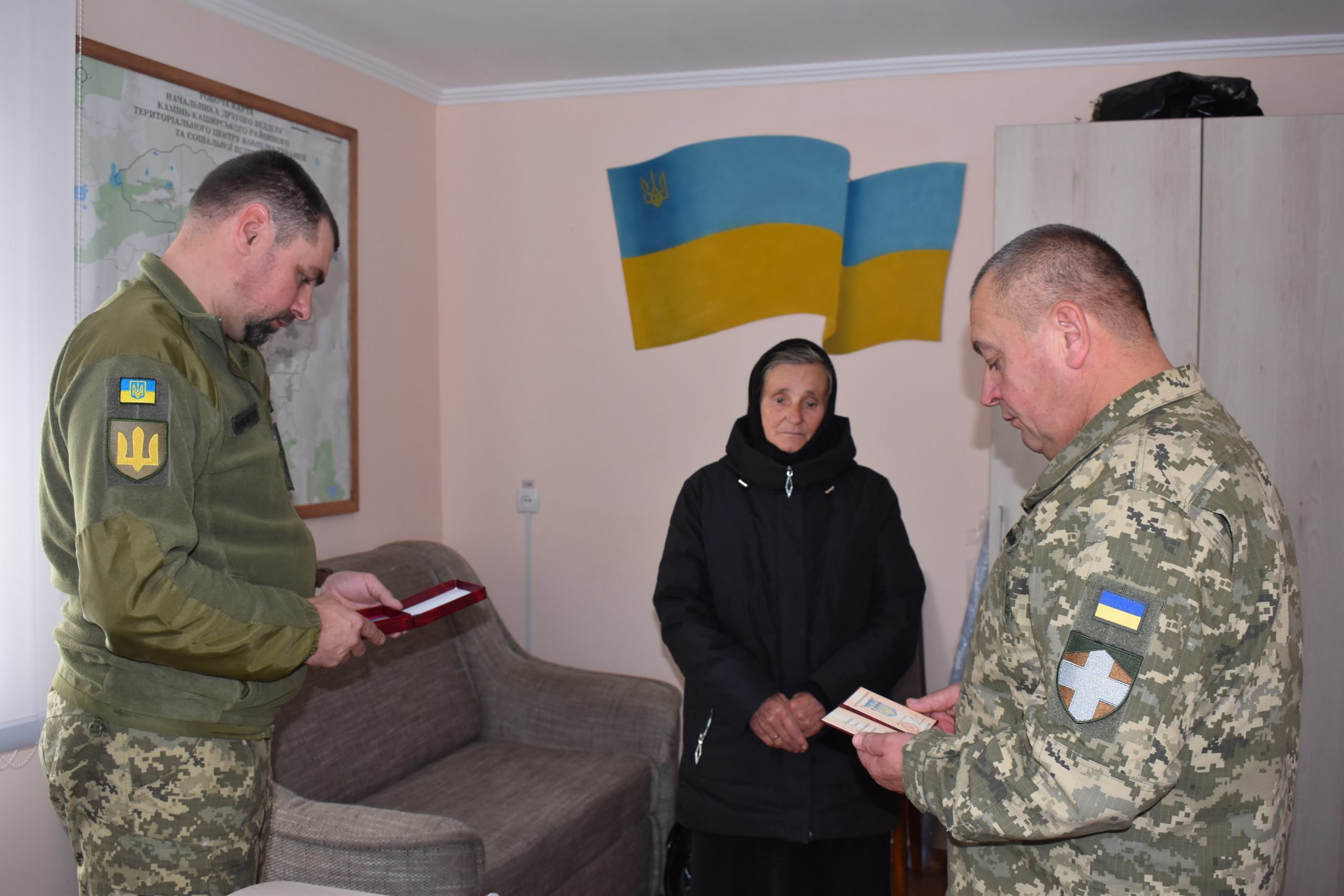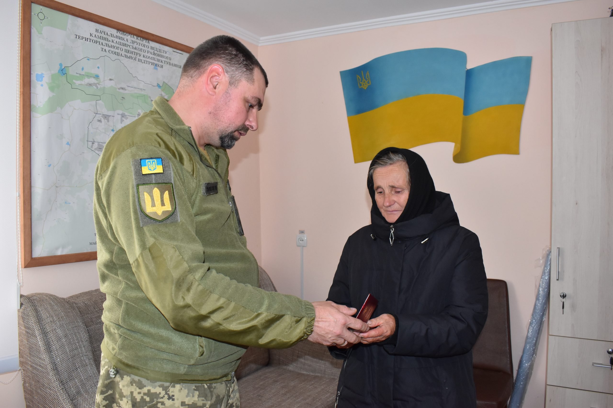 Вручили нагороду жінці та подякували за сина начальник другого відділу Камінь-Каширського РТЦК та СП Валентин Солошик і начальник відділення рекрутингу та комплектування Костянтин Борбич, пише газета Нове життя.