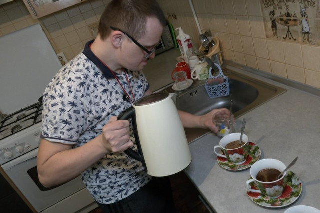 Нині Сергій самостійно може впоратися із більшістю хатніх справ. Каже: щоранку готує каву собі та рідним. Це – одне з його улюблених занять.Зі слів Світлани, коли Сергій був маленьким, інформація про синдром Дауна була малодоступною. Навчанням і розвитком сина опікувалися усією сім’єю.
