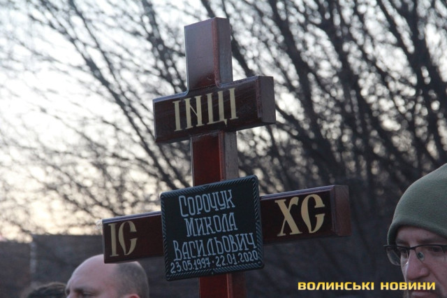 Заупокійна молитва, а також прощання побратимів із загиблим від кулі снайпера 22-річним волинянином Миколою Сорочуком відбулося сьогодні, 23 січня, у місті Маріуполь Донецької області.