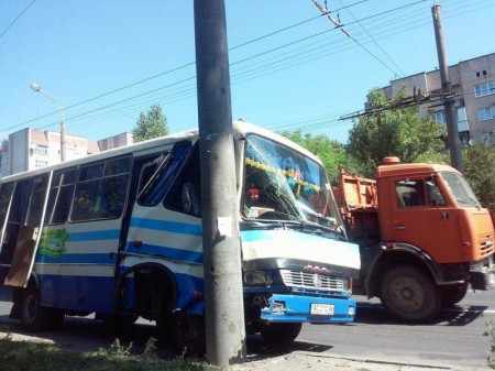 Як ідеться в повідомленні, на вул. Соборній, в районі Ювілейного маршрутка сполученням "Рівне-Луцьк" зіткнулася зі стовпом.
