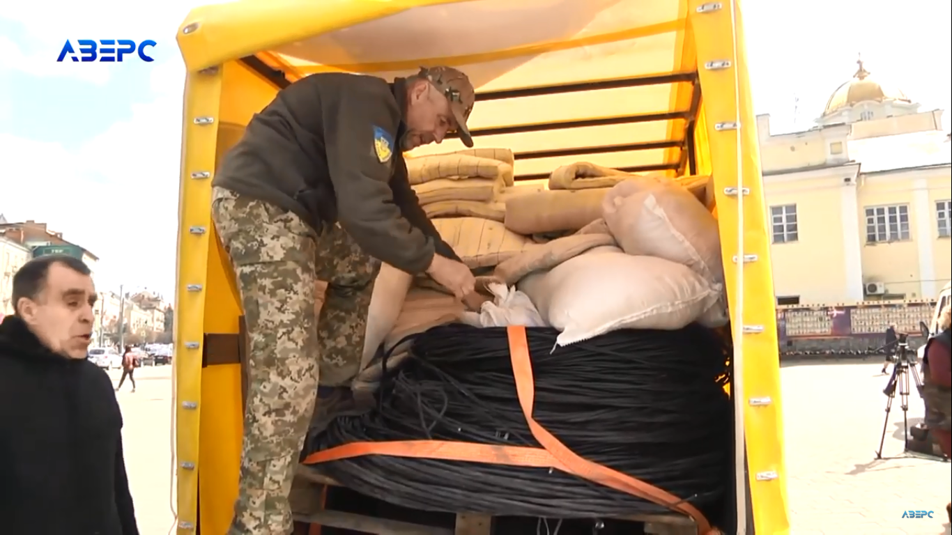 Серед їжі, буржуйок, матраців, сіток та інших речей є і кабелі для розвідки, автомобільні деталі та пральні машини.Очільник волонтерського центру Сергій Балицький каже, що щовесни у хлопців чимало потреб: «Веземо буржуйки, нам допомогли зі Збаража. Також веземо для розвідки кабель, багато інструментів, таких які їм треба в побуті. Як ви бачите скоби, рукавиці, лопати і також автомобільні запчастини».